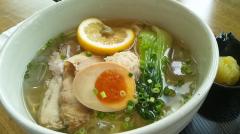 ハッピークーポンで変り玉ひとつ頂きました。お店の方に、冷やしに合うのは何でしょう?とお尋ねしたところ、スープにレモンもはいっているので果実玉がバッチリ、と云うことで大正解。そのレモンに載っている柚子胡椒も佳いアクセントです。透き通ったサッパリスープで暑気払い。