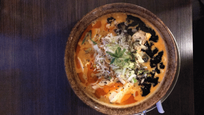 坦々ベースにラー油とマー油が入ったピリ辛スープに荒切り豆腐がマッチして、トロトロチーズが入って美味しいです。