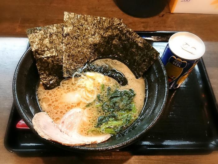 4周年記念でラーメンワンコイン&限定メニュー復活ということで訪問。さすがにかなり混んでいて30分ほど並びました。ラーメンを麺半分オーダー!おまけで缶ジュースをもらいました(*^^*)豚骨醤油スープと海苔&ほうれん草、THE☆家系という感じの大満足ラーメンでした!ごちそうさまでした(*^^*)