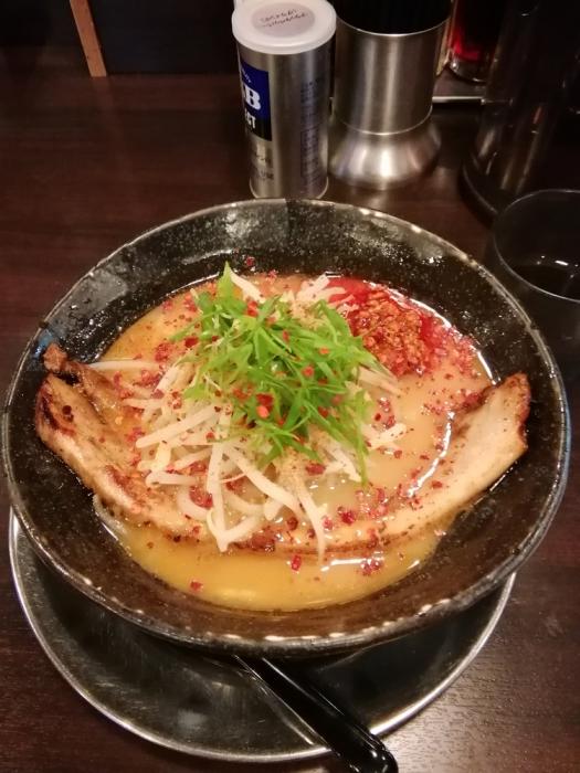 いっとうやの辛かさね醤油830円(HPクーポン100円引き)。具材は、かさね醤油にモヤシと辛肉、韓国とうがらしが入っている。味は尖ってなくて、まろやかな辛さ。辛めのラーメンが食べたい時はこれかな…。ただ、いっとうやさんだけにもう少し何かがほしかった。