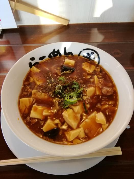らーめん幸、汁なしマーボー麺(ハッピーパス限定)500円。ハッピーパスの限定メニューとしてずっと定着している汁なしマーボー麺。汁の量が少なくて、マーボー餡を絡めて食べるタイプの麺が流行している中でも、ずっと低価格で提供しています。朝8時から開店しているのもうれしいです。