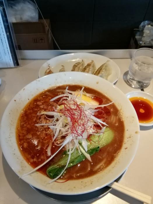 中田製作所、鶏煮干黒味噌担々麺(水曜日限定)890円+餃子350円。2月27日(水)本日の水曜日限定メニューはノーマルな鶏白湯730円と鶏煮干黒味噌担々麺890円の2種類でした。黒味噌担々麺の方を注文しましたが、黒味噌のしょっぱい味で鶏白湯感は全くありませんでした。個人的には先週の黒味噌が入っていない方が好みです。