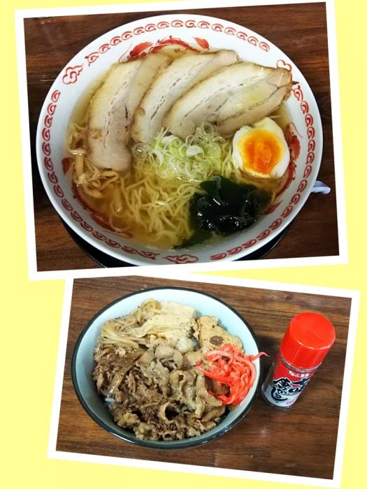 流石にセットや大盛食べたらはしごは無理ですから、シンプルに支那そば‼️・・・(@ ̄□ ̄@;)間違えて物見山店のだった!!※久し振りに伺ったら、牛めしセットなるメニューが有りました(o゚Д゚ノ)ノ流石に今回は無理でしたの