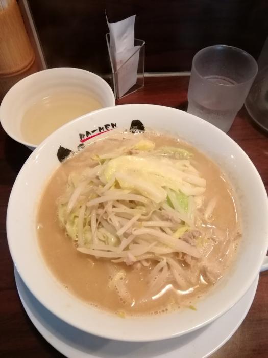 RA-MEN OGIKAWA亀田店、【限定】豚骨味噌(令和にむかってGO GO!!)550円。5/1·5/2限定価格の豚骨味噌です。令和最初のラーメンでしたが、味は想像どおりで、味の濃さを調整できるスープがついてきます。