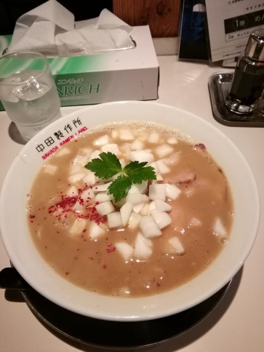 中田製作所、【5/21夜限定】Twitterのらーめん?600円。twitterで告知があった5/21夜営業限定のラーメンです。ベースは魚介と豚骨がメインの濃厚スープです。濃厚なスープに甘い白子玉ねぎと細麺が合います。チャーシューも肉感のあるしっかりしたやつでした。