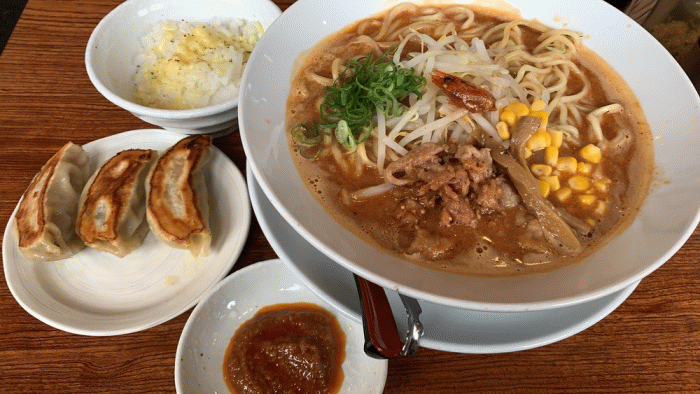 チャーシューでは無く、豚の生姜焼きがのる逸品✨
