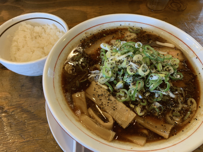 今日は、ブラックラーメン¥830と✨半ライス¥100をいただきました❤️(*゚▽゚*)