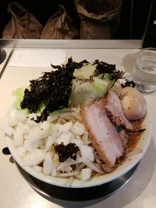 中田製作所、【7/2夜限定】twitter背脂ブラック二郎系850円+味玉110円。ゲリラ的に、主に火曜日にある本日夜限定の背脂ブラックの二郎系です。ガッツリいきたい時にオススメです。ボリュームのある野菜に濃い目のスープと麺が合います。