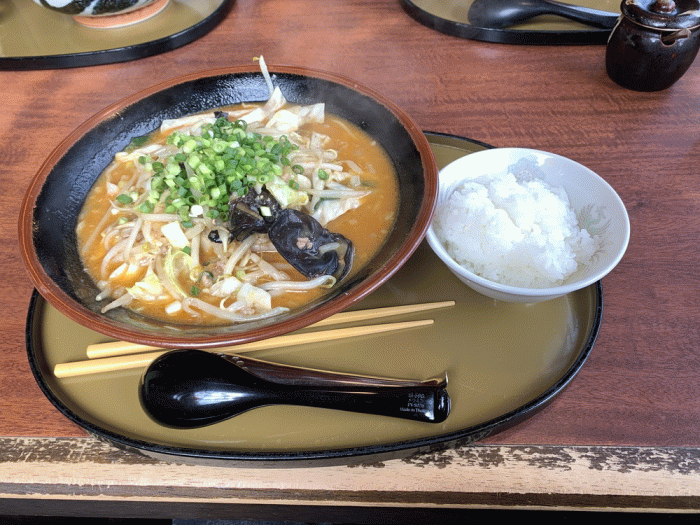 いつもの野菜たっぷり味噌らーめん。サービスライス付き。濃厚なスープに野菜たっぷり。三宝亭の味噌らーめんはおススメですよー。安定の美味しさです。