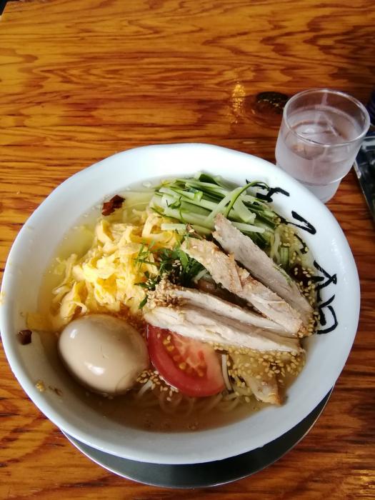 中田製作所、【8月水曜日限定】ネギ油香る冷し潮らーめん850円+味玉110円。8月水曜日限定の3週目になります。3週連続で同じラーメンを注文していますが、今日は具材にキクラゲがなくチャーシューの量も少な目でした。日によって多少のばらつきはありますが、先週はチャーシューの量は倍くらいありました。