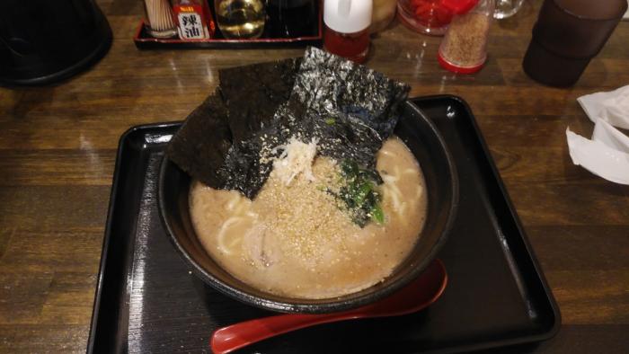 ラーメン(太麺)です。720円が500円。量的には食いしん坊にはチョットものたりないかも。スープは熱々、すりごま投入で底見せです。ごちそうさまでした。