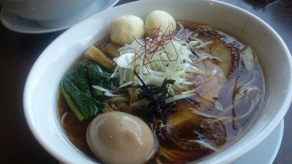 いつもは丸鶏塩らぁ麺なのですが、たまにはと丸鶏醤油らぁ麺を食べてみました。ハッピーパスクーポンで味玉つけてもらいました。