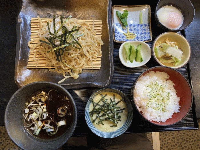 和風出汁効かせたスープにキリっと立った醤油。そこに店主自家製の香味油を加えることで香り高く仕上げた自慢のつけ汁!!青竹打ちの麺は冷水でしめることで、小麦の香りもより強く、弾力のある麺本来の美味しさを存分に味わえます。