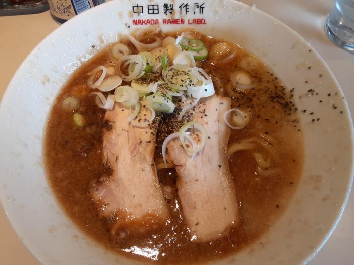 ツルツルで噛みごたえのある極太麺に対して、濃くて深みのある醤油スープが負けてません。