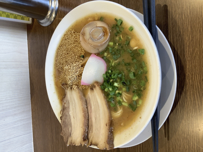 麺屋仁、和歌山らーめん690円+味玉クーポン。濃厚タンメン率が高い麺屋仁さんですが、やっぱり和歌山らーめんです。パッツリの低加水麺に濃厚な豚骨しょうゆスープが絡みます。具材も、メンマやネギ、白ゴマなどが盛り沢山、分厚いチャーシューも2枚入っています。クーポンは味玉にしました。
