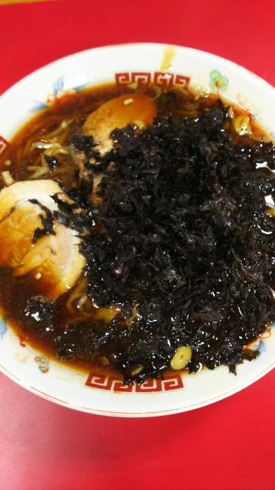 醤油ラーメン細麺(750円)(太麺も選べます)+岩のり(クーポン)頂きました。小千谷唯一のクーポン使えるお店です。真っ黒なスープは見た目ほどしょっぱくなく出汁がきいていてうまい。ただしょっぱかった場合は割スープ頼んでください。油ぎとぎとではないので全世代に好まれるあじですね。麺は好みで細、太が、選べます。チャシューがおいしいくチャシュー麺オーダーのお客多いです。