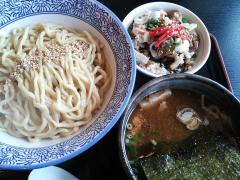 つけめんにそそられて注文、平日限定ミニチャーシュー丼も100円と安さに注文!