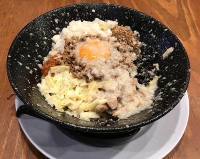 しょっぱすぎてとてもとてもそのままでは食べられませんでした。親の仇のようにしょっぱい。割りスープ頼んでなんとか食いました。しょっぱすぎて苦行でした。麺、具の量も全体的に少なめ。