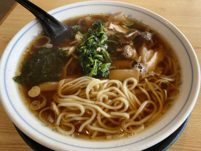 生姜醤油ラーメンの中ではあっさりしていて食べやすいが物足りない。と思いきや卓上にラーメンのタレが置いてあったので入れてみると丁度良くなった。もっと濃い目が良ければ自由に味を足せるというのは初めての体験。