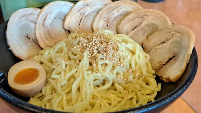 味噌やさんで、焼アゴ醤油つけ麺とチヤーシュー丼をいただきました。