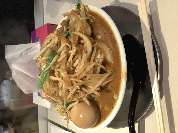 中田製作所、【6月水曜日限定】ベトコンブラック900円+コンディション(野菜)増し160円+味玉110円。6月第4週目水曜日の限定は、ベトコンブラックです。コンディション(野菜)増し160円が選べます。かなりのボリュームなので、しばらくはもやしを食べ続けないと麺にたどりつけません。ブラックですが、意外と優しい味付けになっていますので食べやすいと思います。