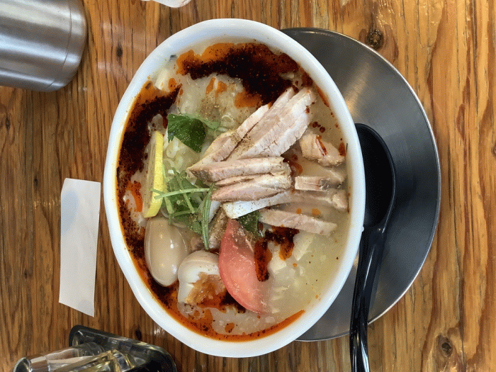 中田製作所、【夏季限定】冷やし酸辣湯麺1000円+味玉クーポン。夏季限定の冷たいラーメンです。どちらかというと優しい味付けで、辛味と酸味がまろやかな酸辣湯麺です。スープの量は多め、チャーシューは燻製チャーシュー、半玉、スライスレモン、トマト、刻みネギ、ミツバと夏らしいサッパリとした1杯です。