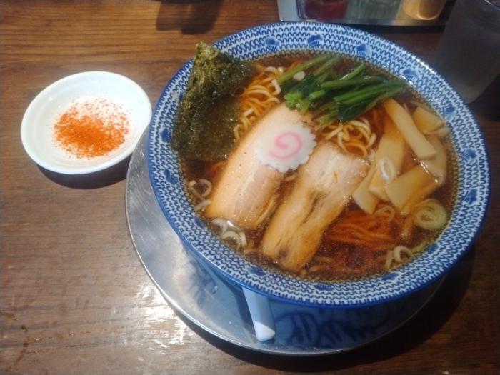 いつものらーめんです。塩ラーメンもあるから、醤油って言わないとダメなんですね。一味(?)唐辛子はお姉さんにお願いしたら、持ってきてくれました。ここもスープが熱々なのが良いですね。以前はもっとスープが辛かったような気がします。