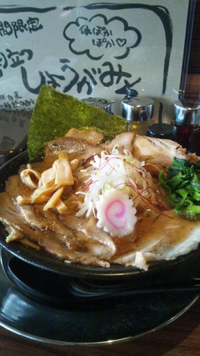 写真の奥に、しょうがみそ、とありますが、写真のラーメンとは関係ありませんでした。写真のは普通に醤油のちゃーしゅーめんです。すみません。悪しからず。