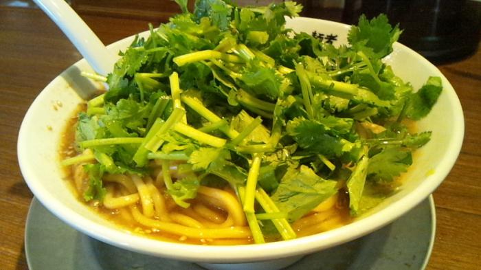9軒目は「風天」さんで無料券指定の「こがし醤油ラーメン」にしました、が、たまたま座った席の真横に「山盛りパクチー」のお知らせが貼ってあり、待ってる間に食入る様に見てしまい、店員のお嬢さんに「こがし醤油ラーメンにもパクチーって合いますか?」とたずねましたところ、「ちょっとやったことがないので・・・」とのお答え。しかし、となりにいた店長さんから「パクチー好きなら何でも合います!」との力強いお言葉。乗りました。「山盛パクチー」¥200の贅沢です。久々のパクチーで元気出た感じします。でも、やっぱり、まぜそば系、つけ麺系に合いそうですね、辛めにして。★は、こがし醤油ラーメンで4つ。パクチーで0.5+です。