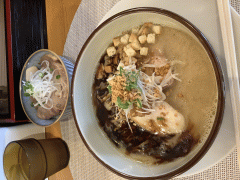 KUBO LABO、【7/14(日)6:00〜11:00限定】豚・鶏・MIX白湯そば(ガーリック)1100円+豚飯400円。朝ラーには珍しい濃厚白湯系のラーメンです。ノーマル、ガーリ ... 続きを読む>>