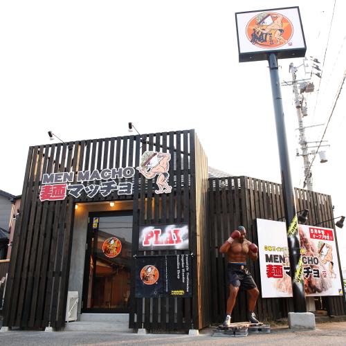 麺マッチョ2号店が西区上陸!!大学前駅近く、このインパクト抜群の外観が目印です。店舗前には専用の駐車場もあるため車でもご来店ももちろんOK☆