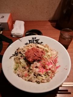 麺者風天亀田店で限定のあさりと明太子の潮バターまぜそば(追い飯付)800円+無料トッピング辛肉。まぜそばはとにかくよく混ぜること。バターが全て溶けた頃が食べごろ。具材は相性がいいものばかりなので文句なし。