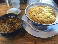 ハッピーパス無料券では、この「つけ麺(並)」「味噌らーめん」「レッドクリフ」のどれかを一杯頂けます。私は、基本のつけ麺にしました。それにしても、こんなにおいしい「つけ麺」が普通に食べられる時代になり